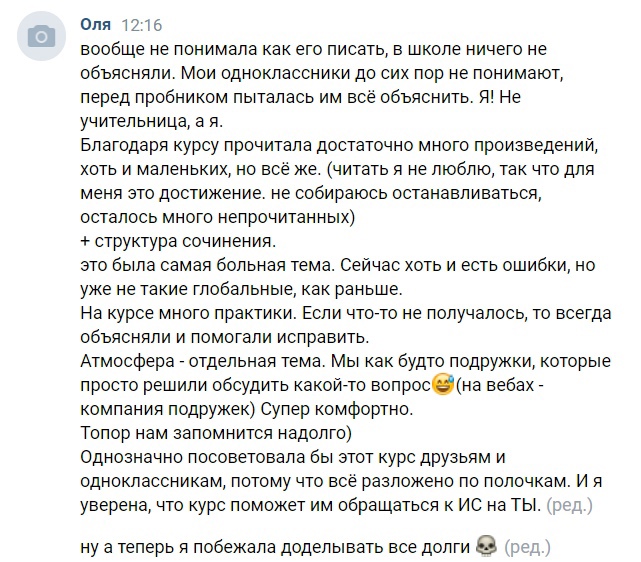 - Разбираем тексты, которые были на ЕГЭ в 2021 и 2020 году, пишем сочинения на уроках вместе, отрабатываем ошибки